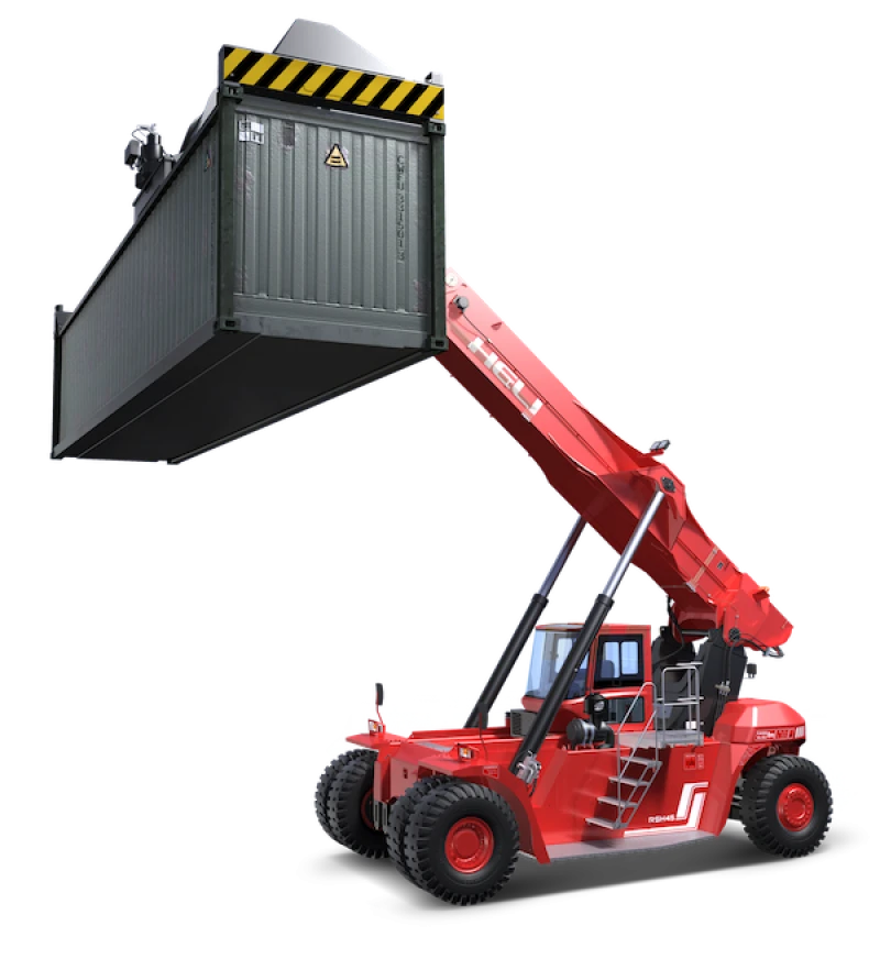 (1)设计标准:与欧洲知名港口机械设计公司联合开发,与欧洲同类同期产品技术水平同步,设计标准高,不仅满足国家标准(GB/T 26474-2011),同时满足欧盟标准(EN1459)及**(1S015018) (2)动力源:采用VOLVO原装进口发动机,拥有低速大扭矩,可靠性更高; (3)变速箱:采用美国DANA电液控制变速箱,档位分配为前四后四,采用电液换挡控制系统,操作平稳,可靠性高; (4)驱动桥:采用德国KESSLER公司重载驱动桥,承载能力大,配全封闭免维护湿式制动器,安全可靠,使用寿命长; (5)液压系统:采用国际知名公司Parker产品,液压系统采用变量泵系统、流量共享(LUDV)系统、LS负载感应系统,从而实现无级供油,无流损失,效率高,实现了节能及降低油温; (6)电气系统:采用美国Parker公司CAN-BUS控制系统,拥有智能载荷安全系统、故障诊断系统,中英文对照显示系统,可维护性高: (7)吊具:采用瑞典ELME公司的817型吊具,该吊县是为正面吊运机特殊的作业工况而专门设计的产品,整体采用**钢制造,单筒式结构,强度高,视野好: (8)驾驶室:应用人体工程学原理设计,操作环境舒适、安全,超大的玻璃面积,视野好,内置冷暖空调。驾驶室位置可根据驾驶员需要进行前、后调整:; (9)标配可视倒车预警系统、车联网系统: (10)选配装置:双重防倾翻系统、自动灭火装置、作业信息打印等。 | ![]() |